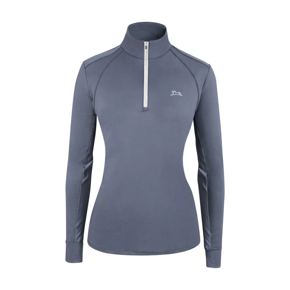 The Sienna schooling shirt with 37.5® technology gives ever rider that classic, yet sporty look that will never go out of style. The patented thermoregulation technology has proven to help your body manage its core temperature and therefore, increase stamina. It keeps you comfortable by helping your body to maintain an optimum core temperature of 37.5° Celsius (99.5° Fahrenheit) which is ideal for peak athletic performance. The particles are naturally derived and work for the life of the product (it will never wash out!). 44% Polyester/44% 37.5® Polyester/12% Spandex