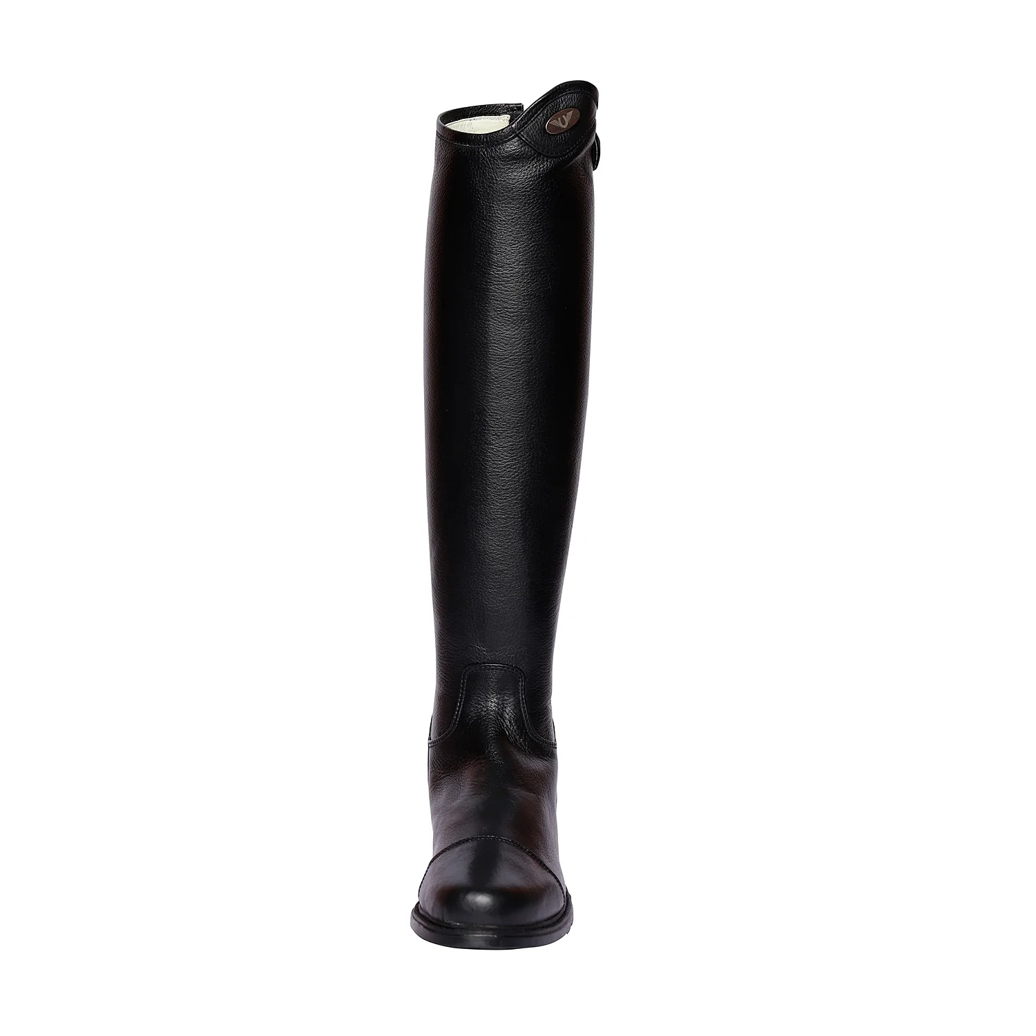 Crafted with soft leather, the TuffRider Men's Belmont Dress Boots are an elegantly styled tall dress boot made with the rider's comfort in mind. Supple leather with a back zip molds to the leg to feel like a custom fit and look. Attractive features like the Spanish top and round toe maintain a traditional style. A contoured ankle and memory foam foot bed will keep you relaxed and comfortable for hours in the stirrups. . "Reinforced Steel Shank is used in these boots"